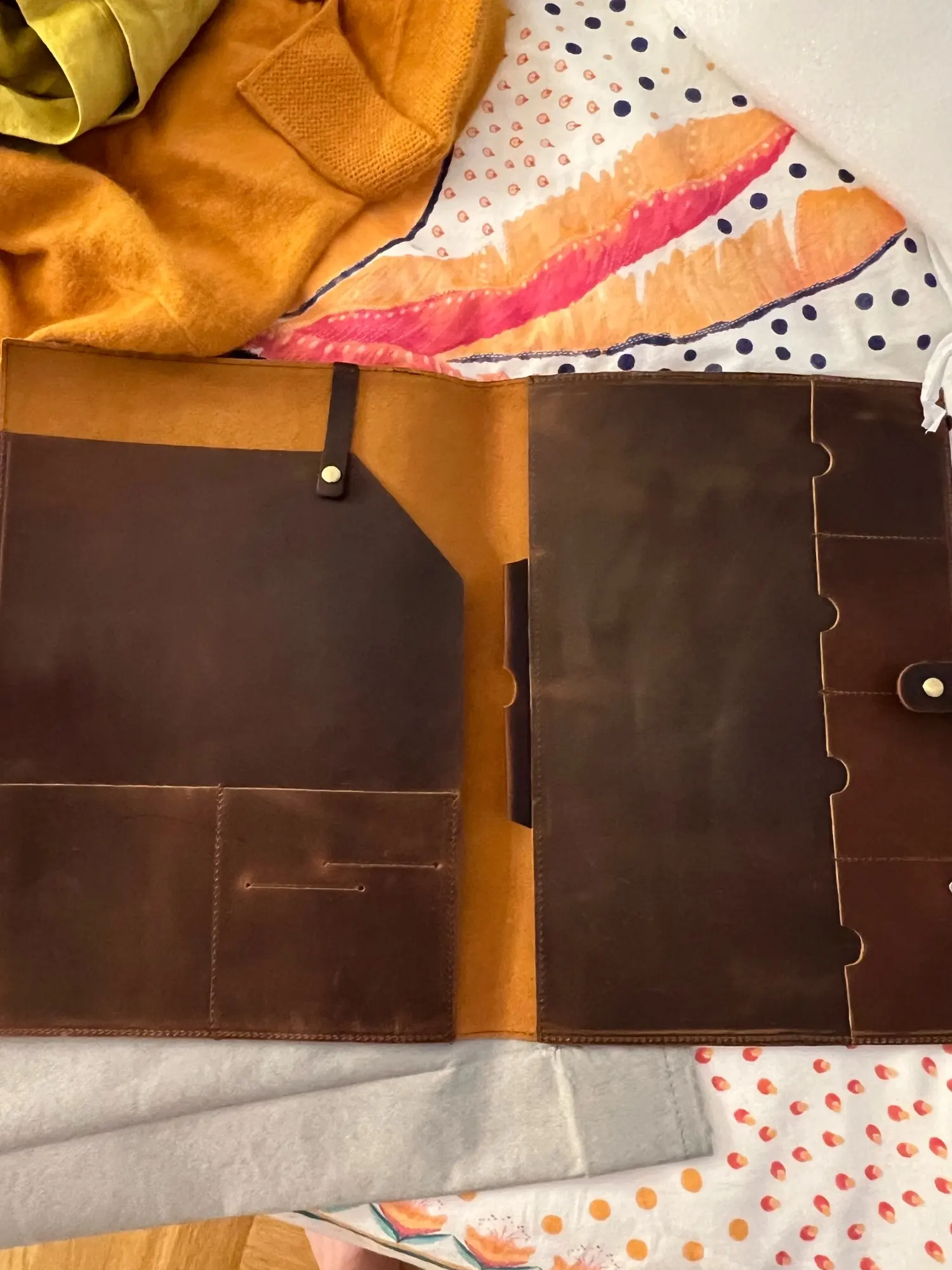 Beautiful leather and the size is perfect for an a5 notebook and my ipad mini. Just love it would definitely recommend to others. It’s amazing quality and super value for money.